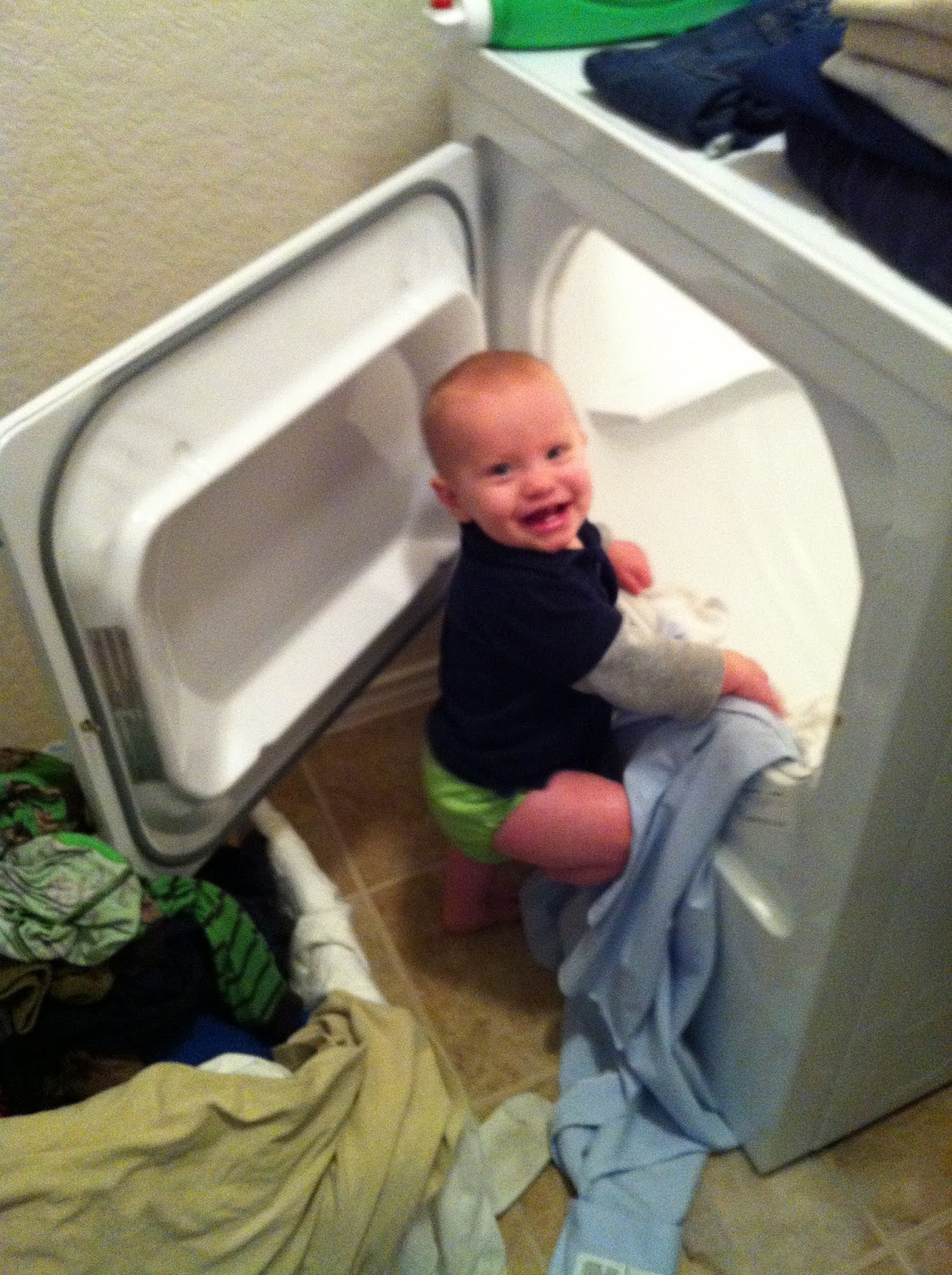 You are walking all over the place now. You first started walking on your own right before you turned 11 months old. For some reason, you were shy about it and would only do it for us every now and then, but that soon passed and now you are everywhere. I love to watch you walk! It is just so cute! You eat pretty much whatever we give you. Meat of any kind still isn't your favorite, but you love beans! Crackers and cookies are also big hits with you. Whenever we are eating something, you come up to us and say "mmmmm" until we share with you! Sometimes you end up eating all of what we have! You are exclusively drinking whole milk (bye bye formula!!) and have been for several weeks now. We are thankful to be spending about $13 per month on milk instead of $120 on formula! You have 5 (almost 6) teeth, two on the bottom and three on the top. There is one that has been ready to cut through for a while, it's just taking it's sweet little time! You are quite the daredevil. You love to climb on things, dive off the bed, climb from the couch to the chair, and get thrown all over. Fear is not something you understand! Our absolute favorite thing you are doing now is giving kisses. You started one day out of no where after Daddy got home from work. He was holding you and leaned over to kiss me. After he did that you opened your mouth and leaned into me to kiss me then leaned over to kiss Daddy. We seriously melted into a puddle when you did that. I won't lie, we set up the scene quite a bit so you will want to kiss us just because it is so adorable!